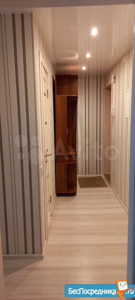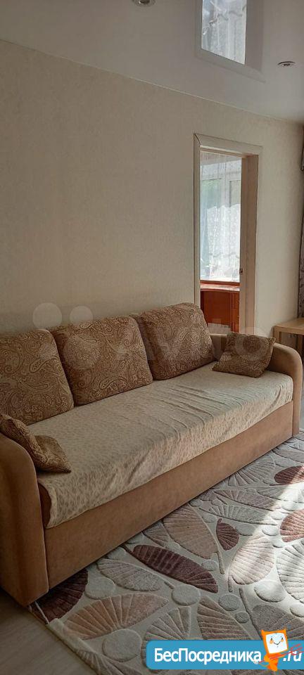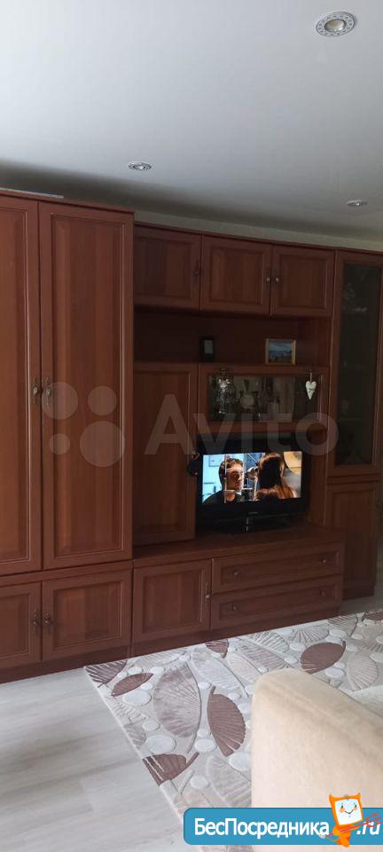 С мебелью: в комнатах два дивана, кресло, кухонный гарнитур, 2 шкафа для одежды, письменный стол, обеденный стол, журнальный столик, стулья мягкие, табуретки, Прихожая. Техника: холодильник, стиральная машина, газовая плита, кондиционер. Вся техника рабочая, в хорошем состоянии. Минимальный набор посуды + одеяла и подушки. Балкон застеклен пластиком. На балконе встроенный шкаф. Свежий косметический ремонт. Заходи - живи. Квартира чистая.