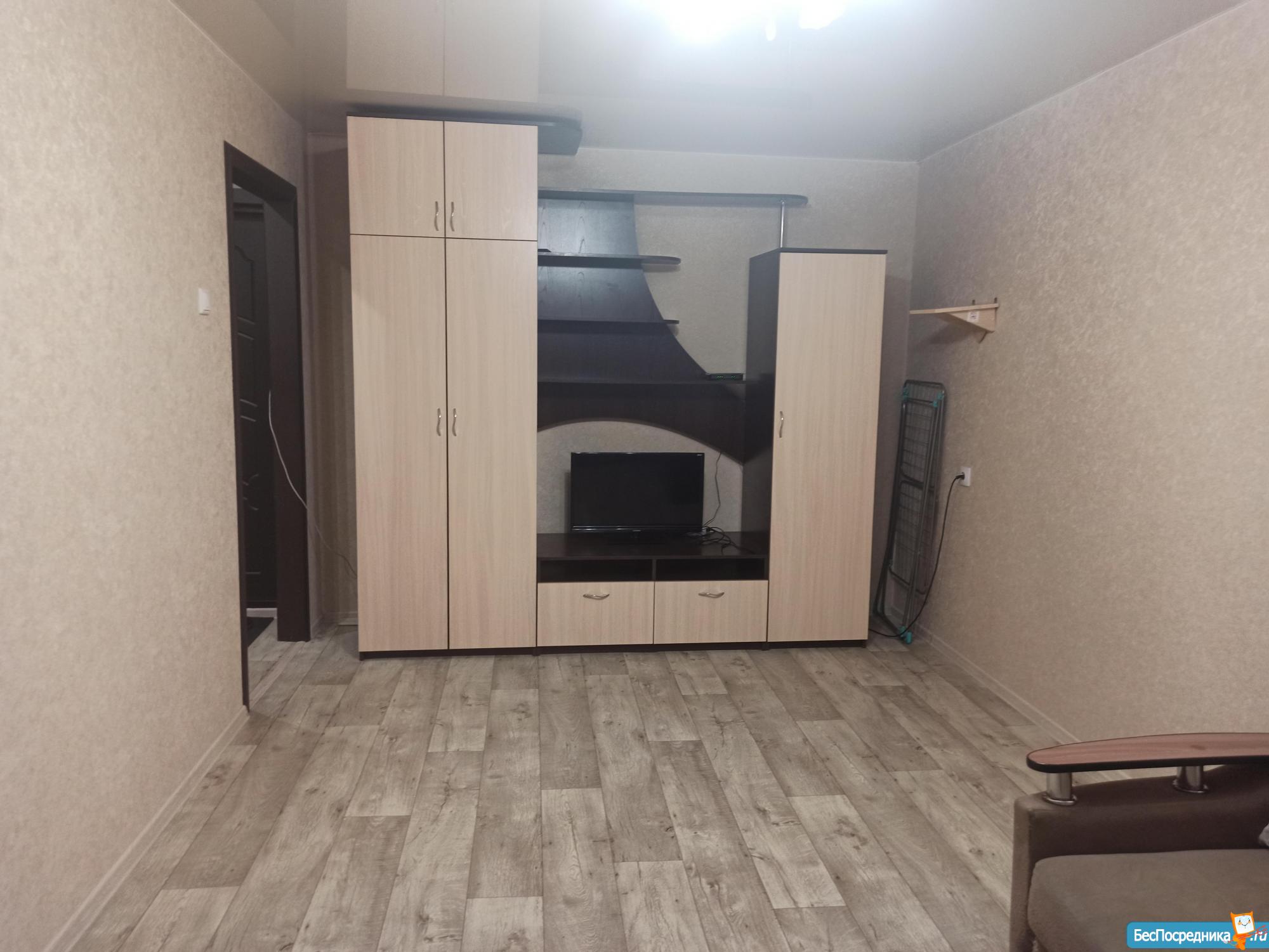 Уютнaя, cветлая, тёплая полноценная однокомнатная квартира в центре города с ремонтом, сдается на длительный срок (от 6 месяцев). ⚡ Арeндa + счётчики + интернет и TV. В квартире есть: диван, стенка в гостиной, телевизор, холодильник, плита электрическая, стиральная машина,сушилка кухонный гарнитур, стол, стулья, гардеробная.