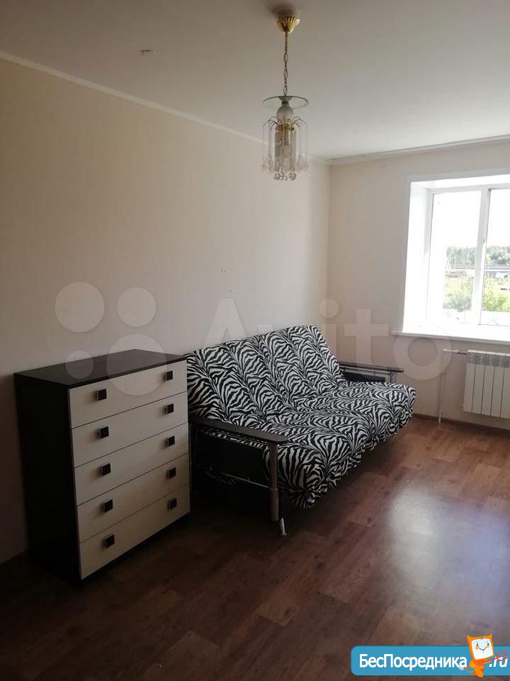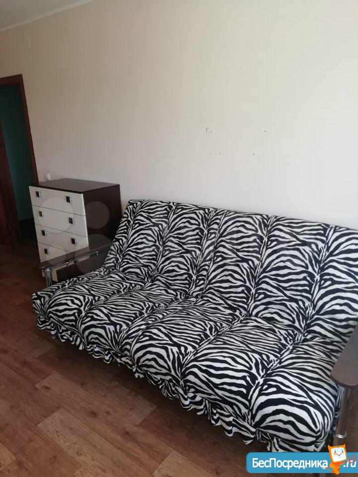 Квартира на длительный срок. На кухне плита, мойка, стол-тумба, стол. В комнате диван, комод. Балкон не застеклен. Санузел совмещённый. Оплата + комунальные