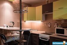В комнатах подсветка отдельных рабочих зон - это создает уютную атмосферу в вечернее время. В районе нет шума,тихо. В целом: светлая,зимой теплая квартира. Платная автостоянка перед домом.