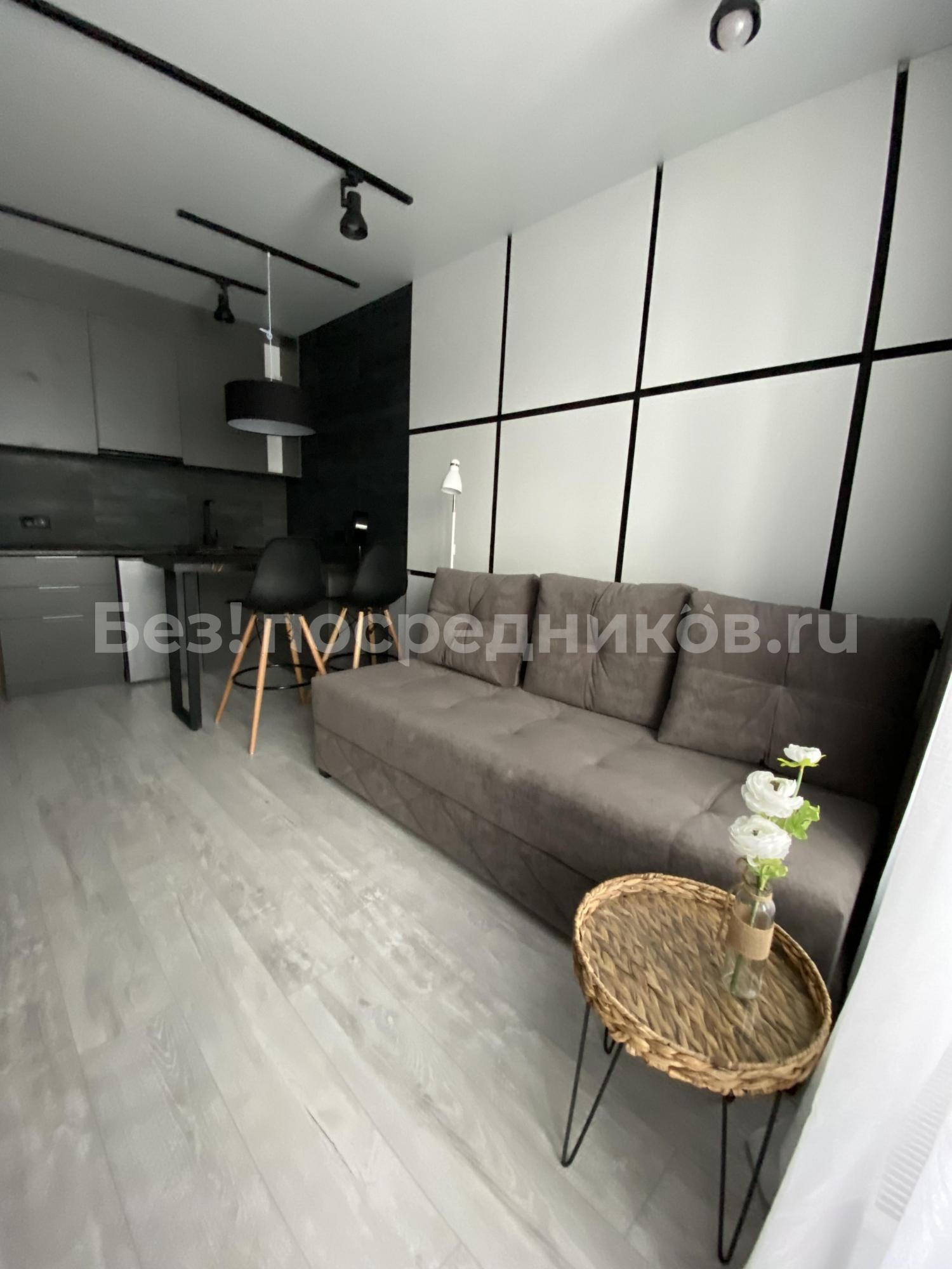 Сдается теплая светлая студия для комфортного проживания . Стильный дизайн. Свежий ремонт. Есть балкон. Полностью благоустроена и обставлена мебелью/техникой (диван, шкаф, кухонный гарнитур, стол, стулья, плита, холодильник, вытяжка, стиральная машинка), предоставляется WIFI. Удобная транспортная развязка. Коммунальные платежи входят в стоимость аренды, но холодная/горячая вода и электричество оплачивается отдельно по счетчику. Собственник. Сдаю без комиссии. Необходим залог 10 000 руб.