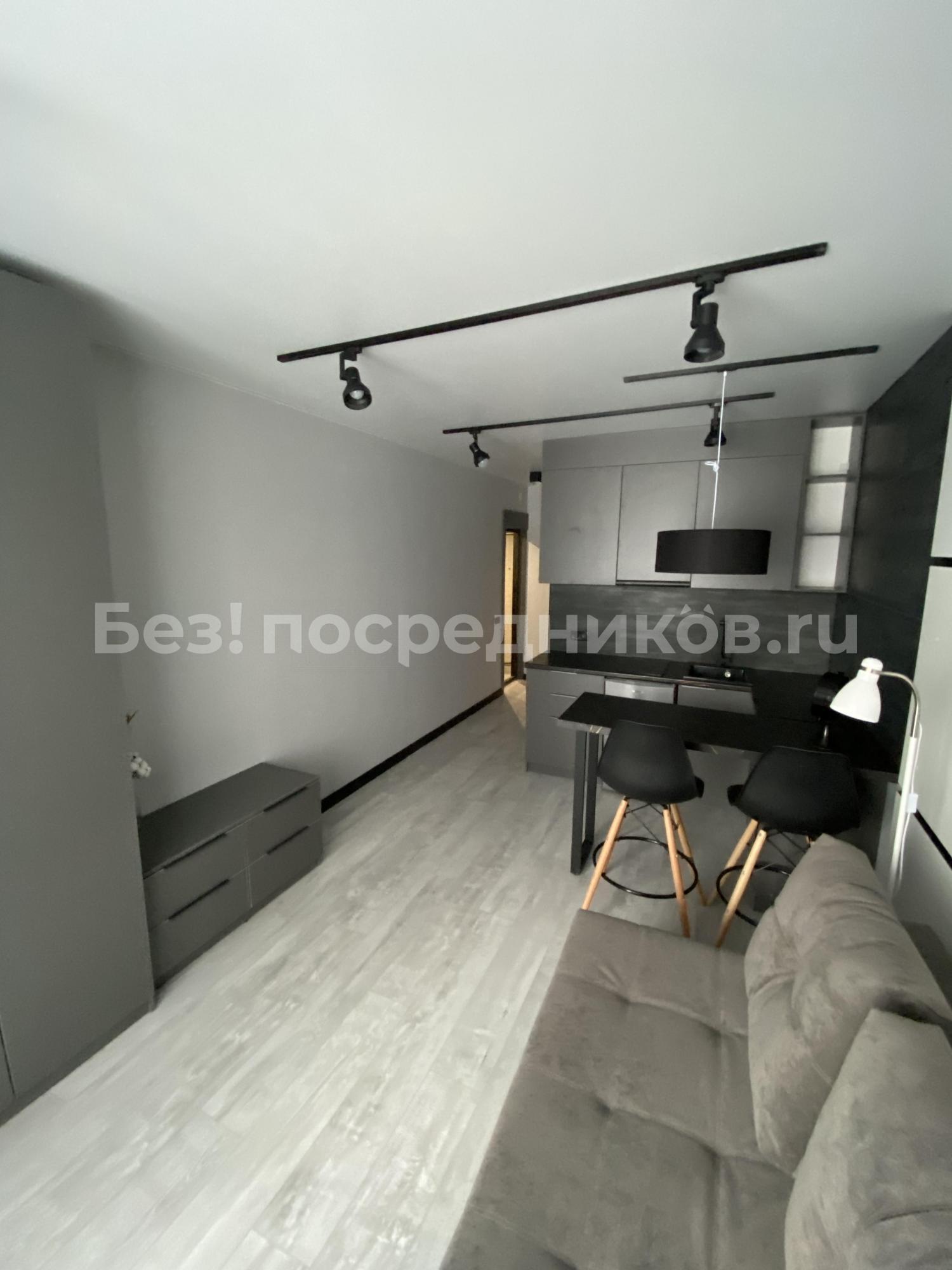 Сдается студия, полностью меблированная на длительный срок (от 6 месяцев). В квартире есть все для проживания: шкафы, диван, стол, стулья, кухонный гарнитур, плита, гладильная доска и сушилка, набор посуды. Бытовая техника: холодильник, микроволновка, чайник, телевизор, утюг, водонагреватель, стиральная машина автомат. Отдам предпочтение семейной паре без вредных привычек, детей и домашних животных! В квартире курить нельзя! Оплата – 22 000руб + квитанция полностью. Залог 15 000руб. Залог верну при окончательном расчете, если ничего не повреждено и нет долгов.
