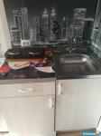 Не большая квартирка-студия, есть шкаф, стол и стир машинка автомат(постороннии предметы на фото в данный момент отсутствуют), оплата 11тысяч без дополниткльных оплат к/у.