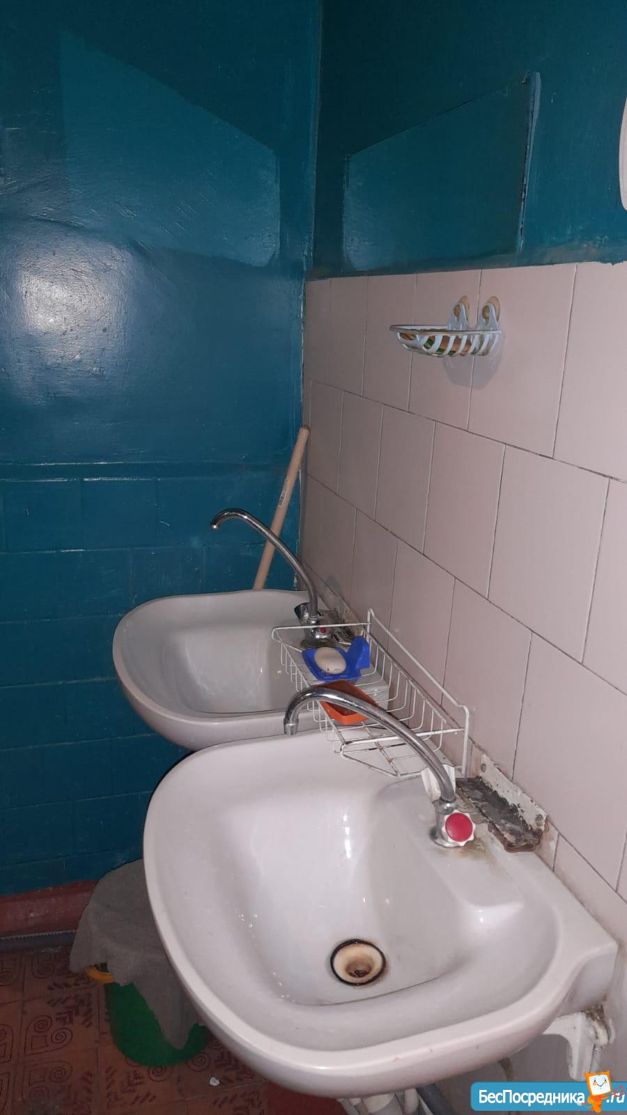 Санузел общий на 4 комнаты ,есть общая кухня со столом и плитой ,за чистотой следят .