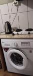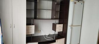 Уютная комната с мебелью ,стиральная машинка ,холодильник ,микроволновка ,плита с духовкой ,телевизор ,диван ,2 шкафа.