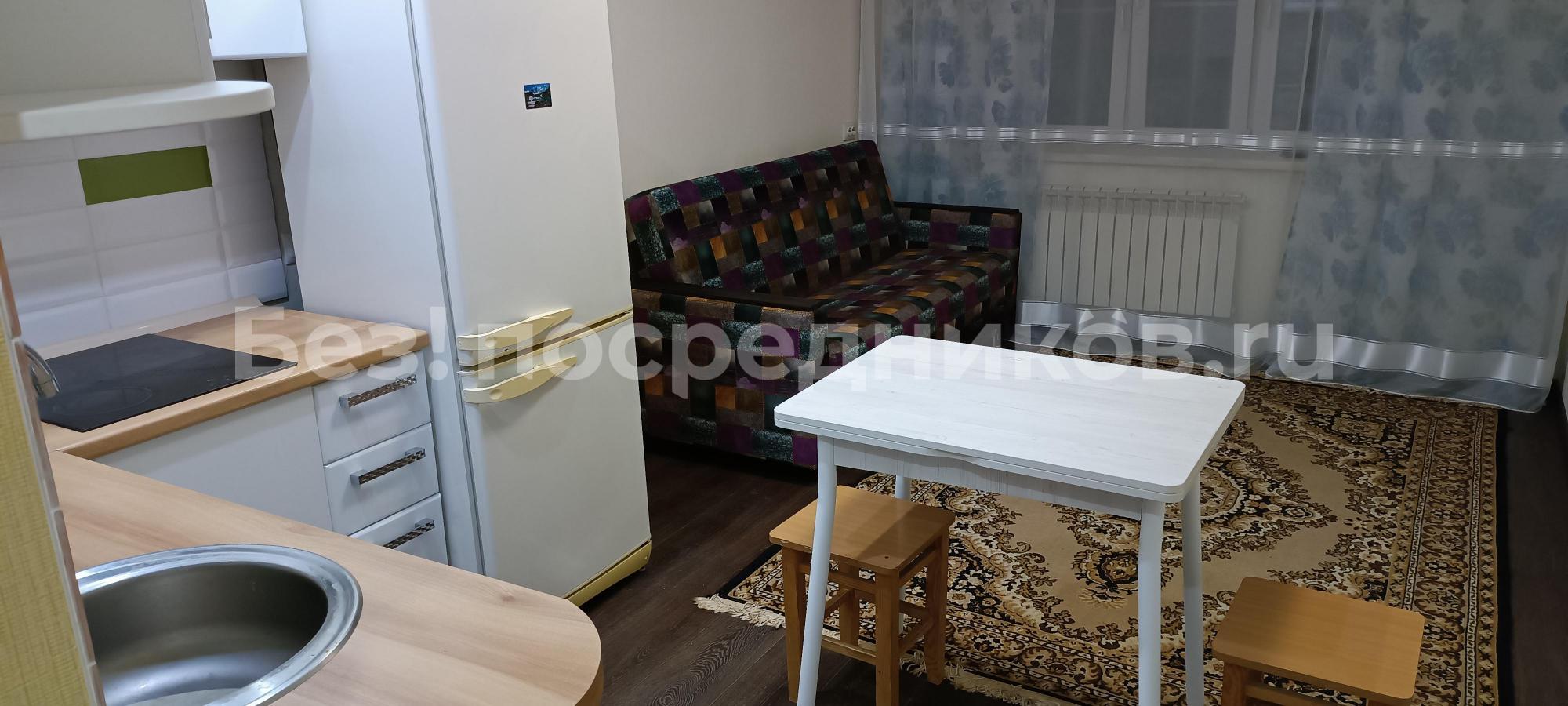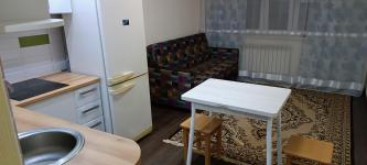 Сдается однокомнатная квартира-студия. Ремонт, мебель: кухня, диван, холодильник, стиральная машина, телевизор. Долгосрочная аренда. Близко к центру.