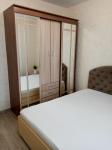 • Спальня с туалетным столиком и светильником, тумба под TV, шторы блэкаут, двуспальная кровать 160 см полностью укомплектована (ортопедический хороший матрас, постельное белье, покрывало, пуховые подушки, две доп. подушки, непромокаемый наматрасник)