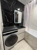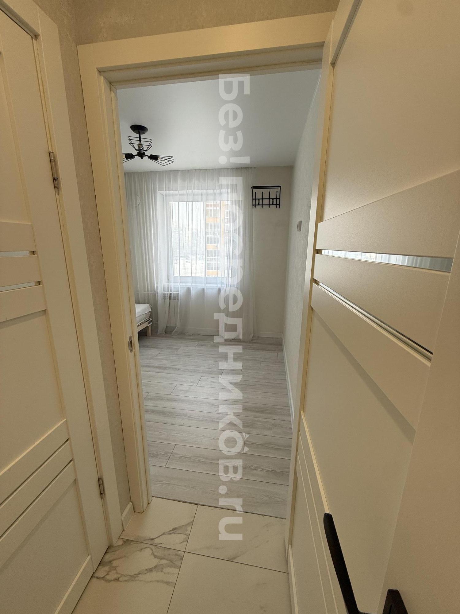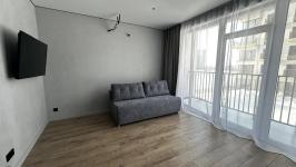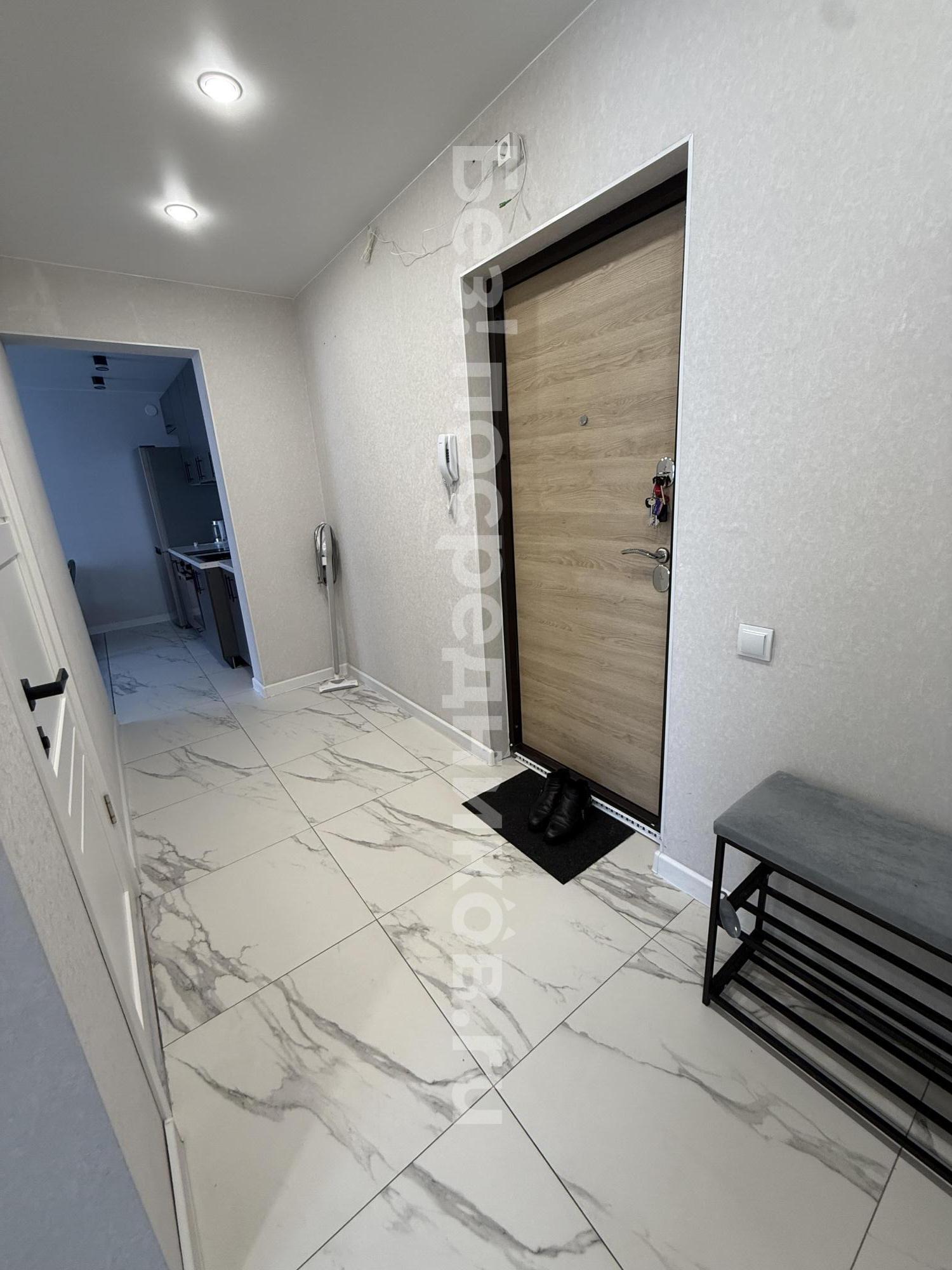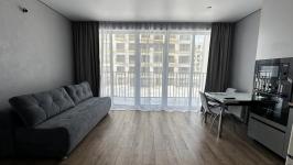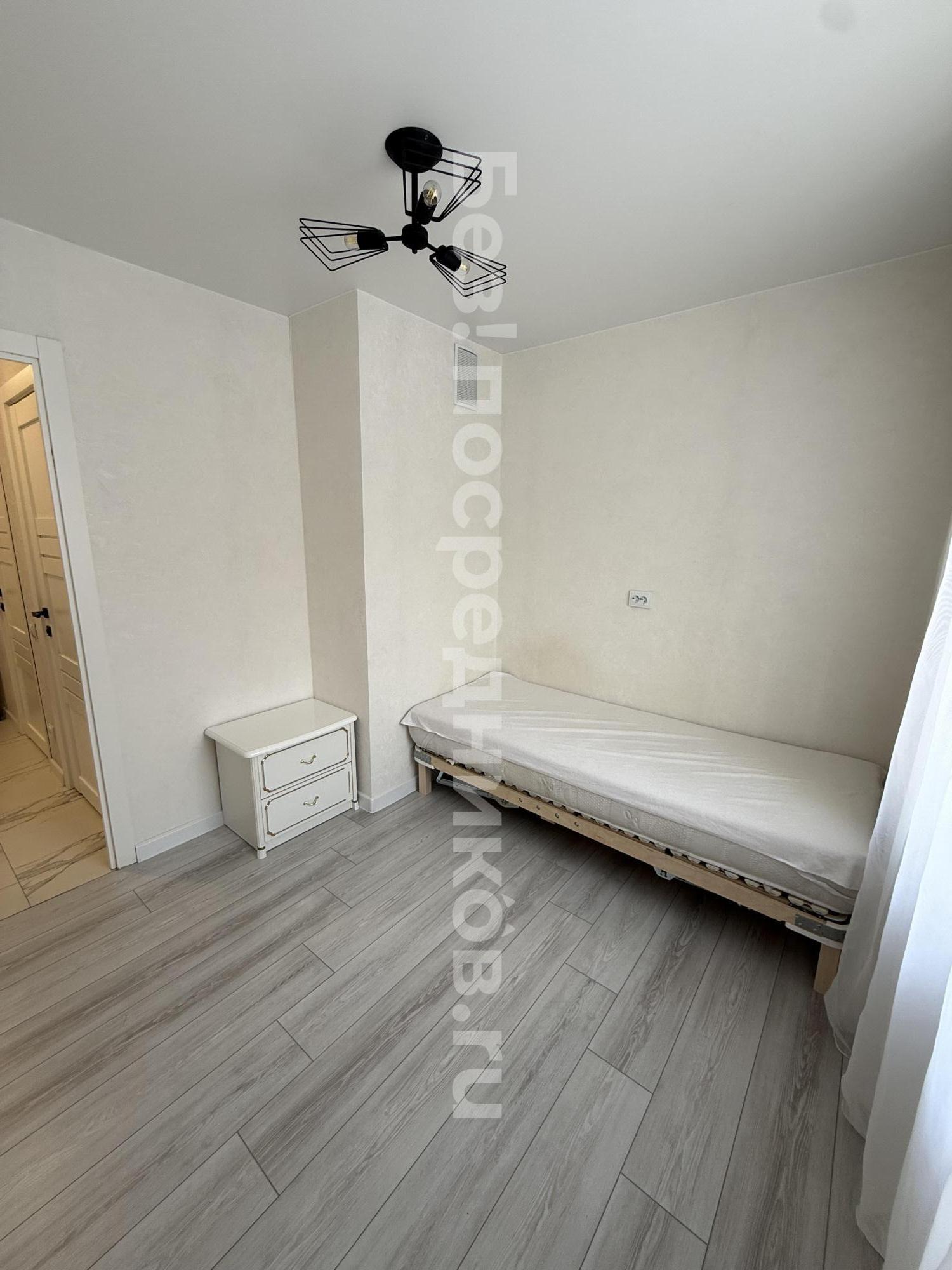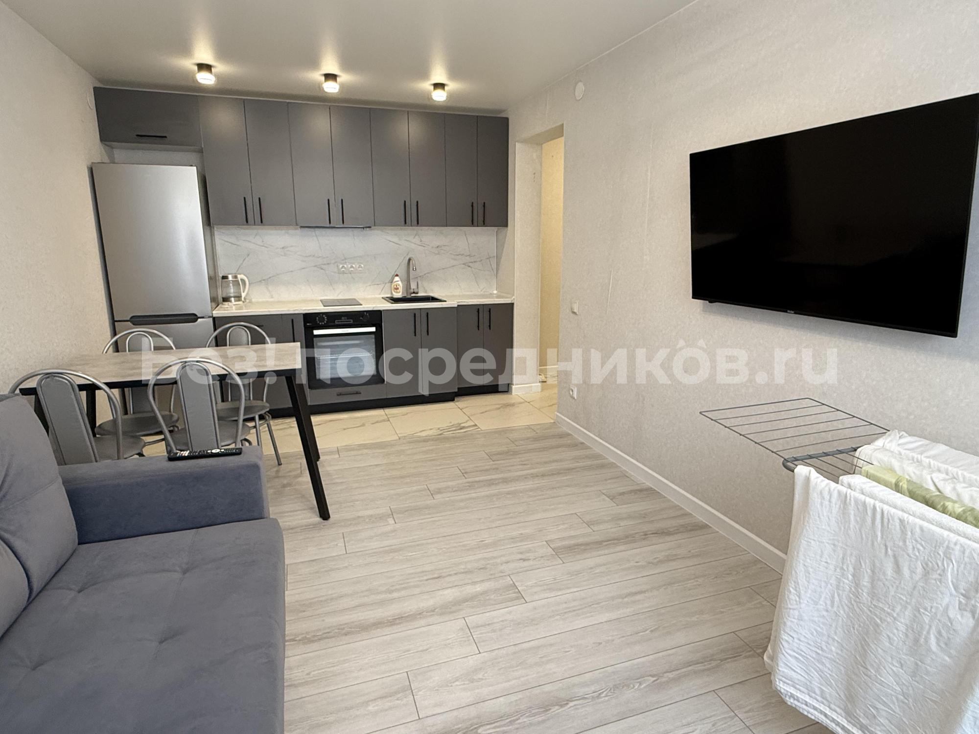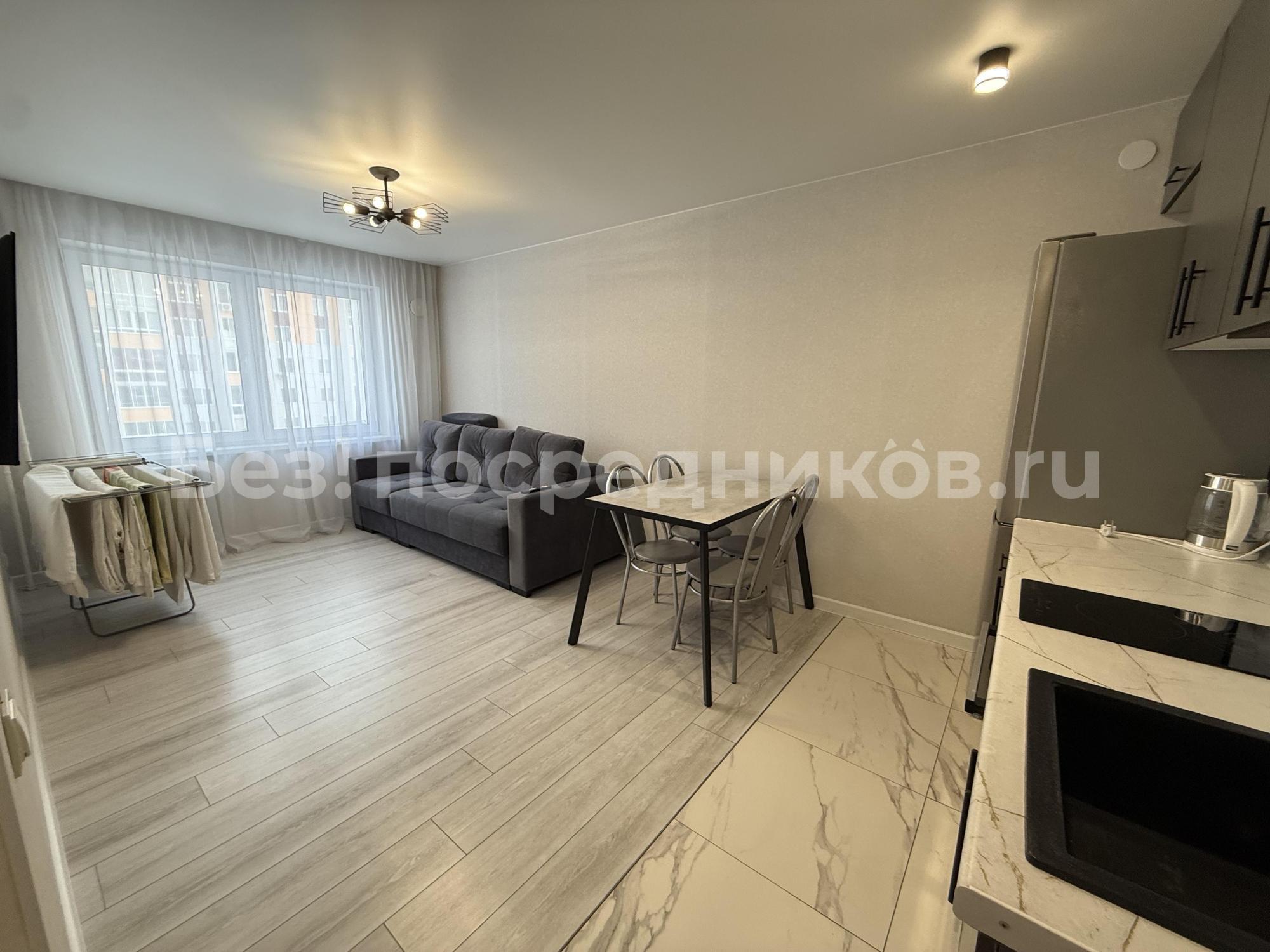Новостройка, никто не жил.Евроремонт. Отделка квартиры в скандинавском, спокойном стиле. На кухне встроенная техника, плита индукция, есть посуда, раковина каменная. Потолки натяжные, в комнате парящий. Лоджия с отделкой. Есть ТВ, диван, гардеробная комната. Мебель, техника - всё новое. Стиральная машина, ванна. Видеонаблюдение, парковка. Коммуналка по счетчикам. Дом теплый, зимой отопление не включали. В шаговой доступности остановки транспорта во все направления города. Аренда долгосрочная