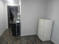 Есть двуспальная кровать (на фото еще нет), рабочий и обеденный столы, холодильник, электрическая плита.