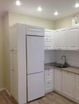 Кухонный гарнитур, электроплита с духовкой, вытяжка, микроволновая печь, большой холодильник