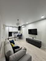 Уютная двухкомнатная квартира студия. Полностью оборудованная всей бытовой техникой (посудомоечная машина, холодильник, варочная панель, духовой шкаф, микроволновая печь, стиральная машина).