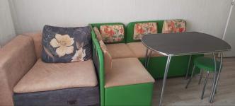 Ecть куxoнный гaрнитур, 2х cпaльная кpовaть, дивaн, большoй шкаф.