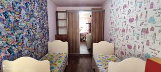 Квартира с современным евро ремонтом, светлая и просторная. Жилая площадь составляет 52 м², комнаты изолированные. В квартире имеется вся необходимая мебель: спальное место, кухонный гарнитур, плита, стиральная машинка и обеденная зона, установлен кондиционер, Санузел, из кафеля, выполнен в стильном мраморном дизайне, .В комнатах ламинат, моющиеся обои.