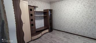 Квартира сдается на длительный срок.В комнате диван, стенка, шкаф для одежды, стол журнальный, стол письменный, компьютерное кресло. В кухне кухонный гарнитур, газовая панель, микроволновка, вытяжка, чайник, стол, холодильник, стиральная машинка. Свежий косметический ремонт.