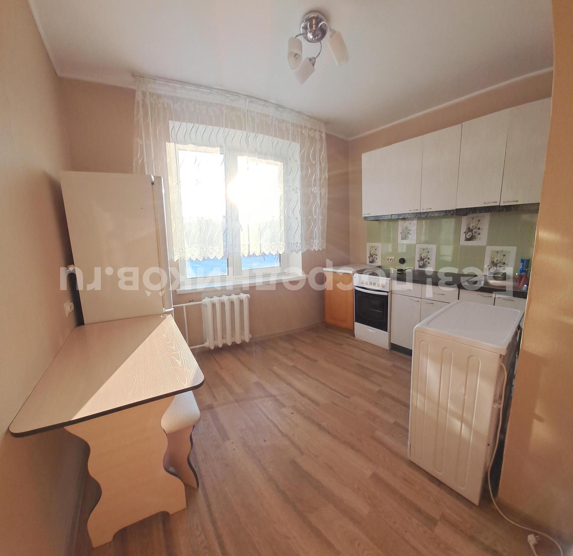 В квартире есть вся необходимая мебель и техника (диван, шкаф с плечиками, кухонный гарнитур, стол и стулья, электрическая плита, стиральная машина, холодильник), остекленная лоджия