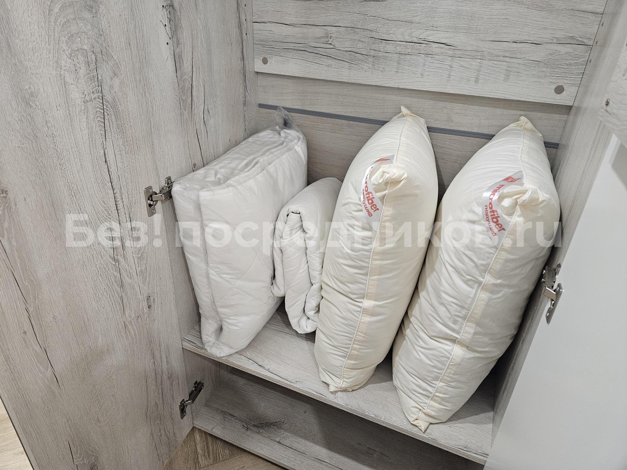 В квартире: холодильник, телевизор, кондиционер, индукционная плита, переносная духовка, чайник, микроволновка, стиральная машина.