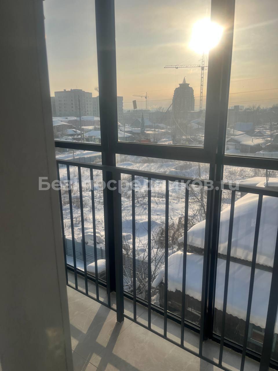 Просторная лоджия с видом на город станет отличным местом для отдыха.