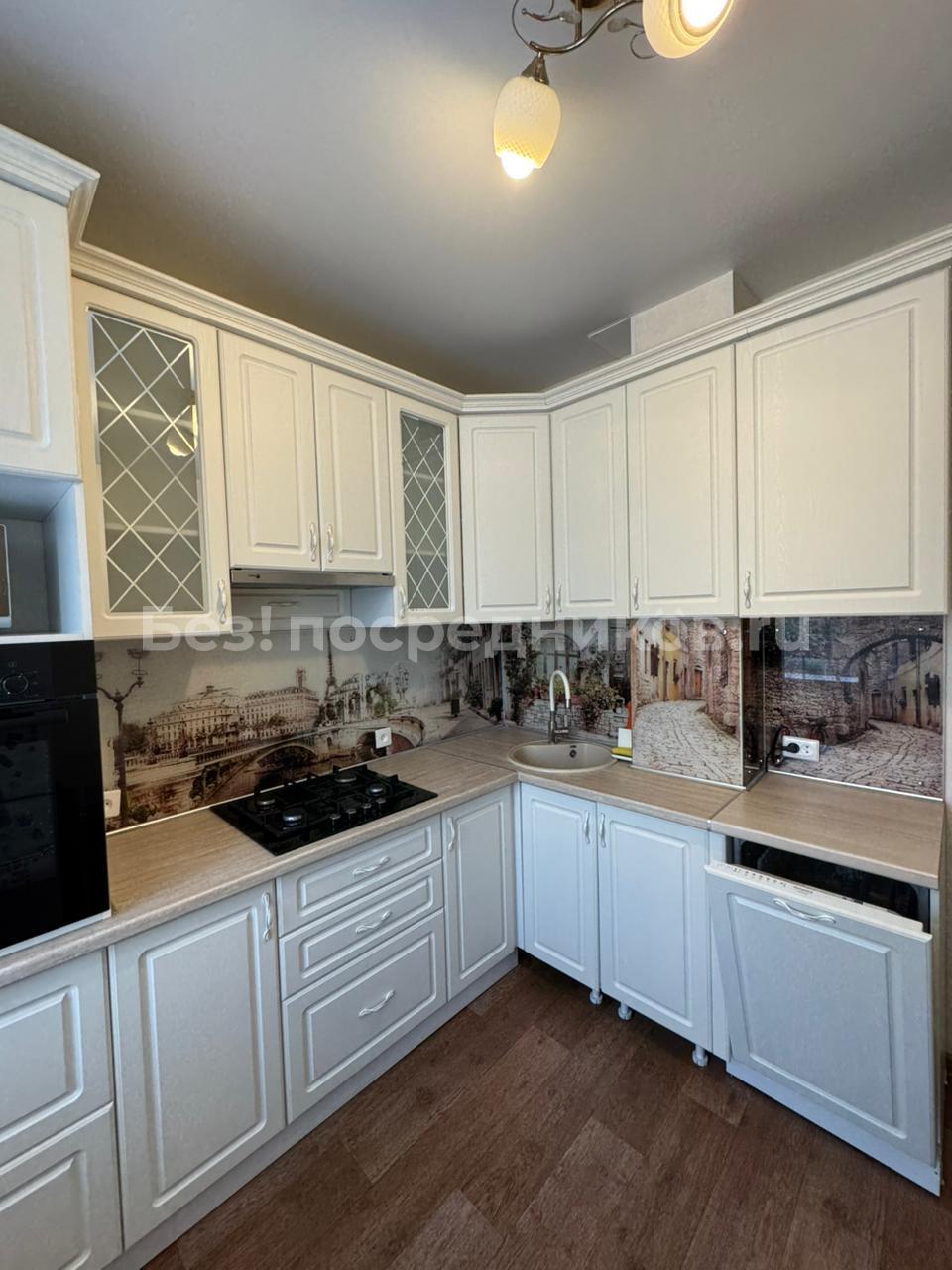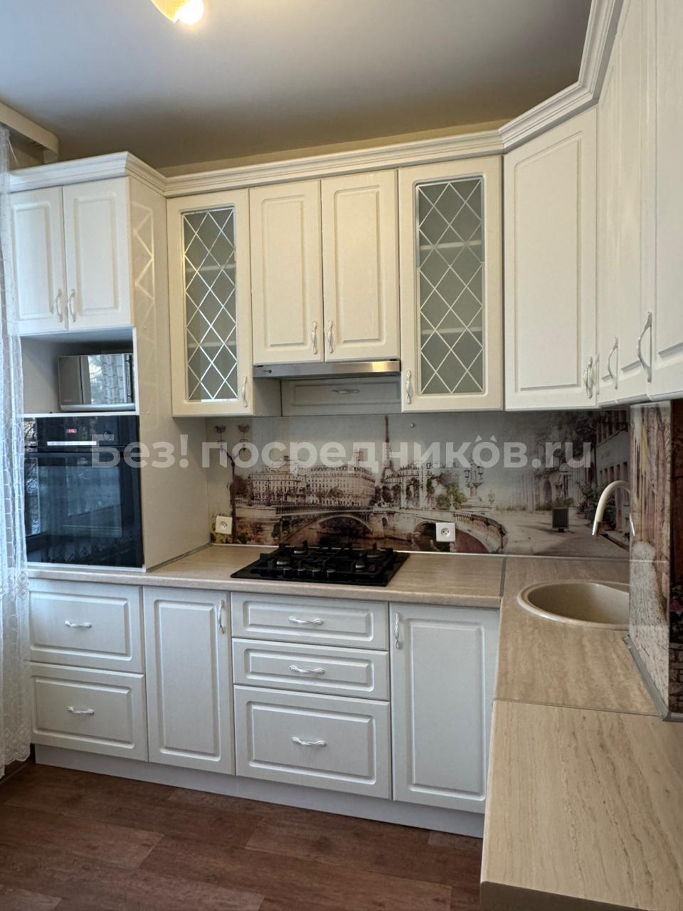 Просторная кухня площадью 8 мг оснащена необходимой бытовой техникой, включая холодильник, плиту с духовым шкафом и вытяжкой. В комнате установлены шкаф, комод, прикроватные тумбочки, а также двухспальная кровать с мягкой обивкой. Из кухни есть выход на панарамный балкон, где можно наслаждаться свежим воздухом.