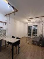 Новостройка, никто не жил.Евроремонт. Отделка квартиры в скандинавском, спокойном стиле. На кухне встроенная техника,в т.ч. холодильник, плита индукция, есть посуда, раковина каменная. Потолки натяжные, в комнате парящий. Лоджия с отделкой. Есть ТВ, диван, гардеробная комната. Мебель, техника - всё новое. Стиральная машина, ванна.Лучше один раз приехать, посмотреть и остаться! Видеонаблюдение, парковка. Коммуналка по счетчикам, в т.ч. отопление. Дом теплый, зимой отопление не включали. В шаговой доступности остановки транспорта во все направления города. Аренда долгосрочная, возможен небольшой торг.