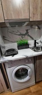 В комнатах и на кухне есть вся необходимая мебель для комфортного проживания. Так же холодильник, стиральная машина и маленький телевизор, есть мебель и посуда,