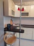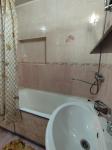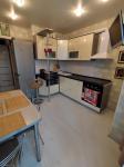 Кухня просторная, оснащена необходимой бытовой техникой, включая холодильник и стиральную машину. Из мебели есть шкафы и обеденный стол. Сдается вместе с мебелью, фото соответствуют. Ванная комната и туалет раздельные, оформлены в современном стиле.