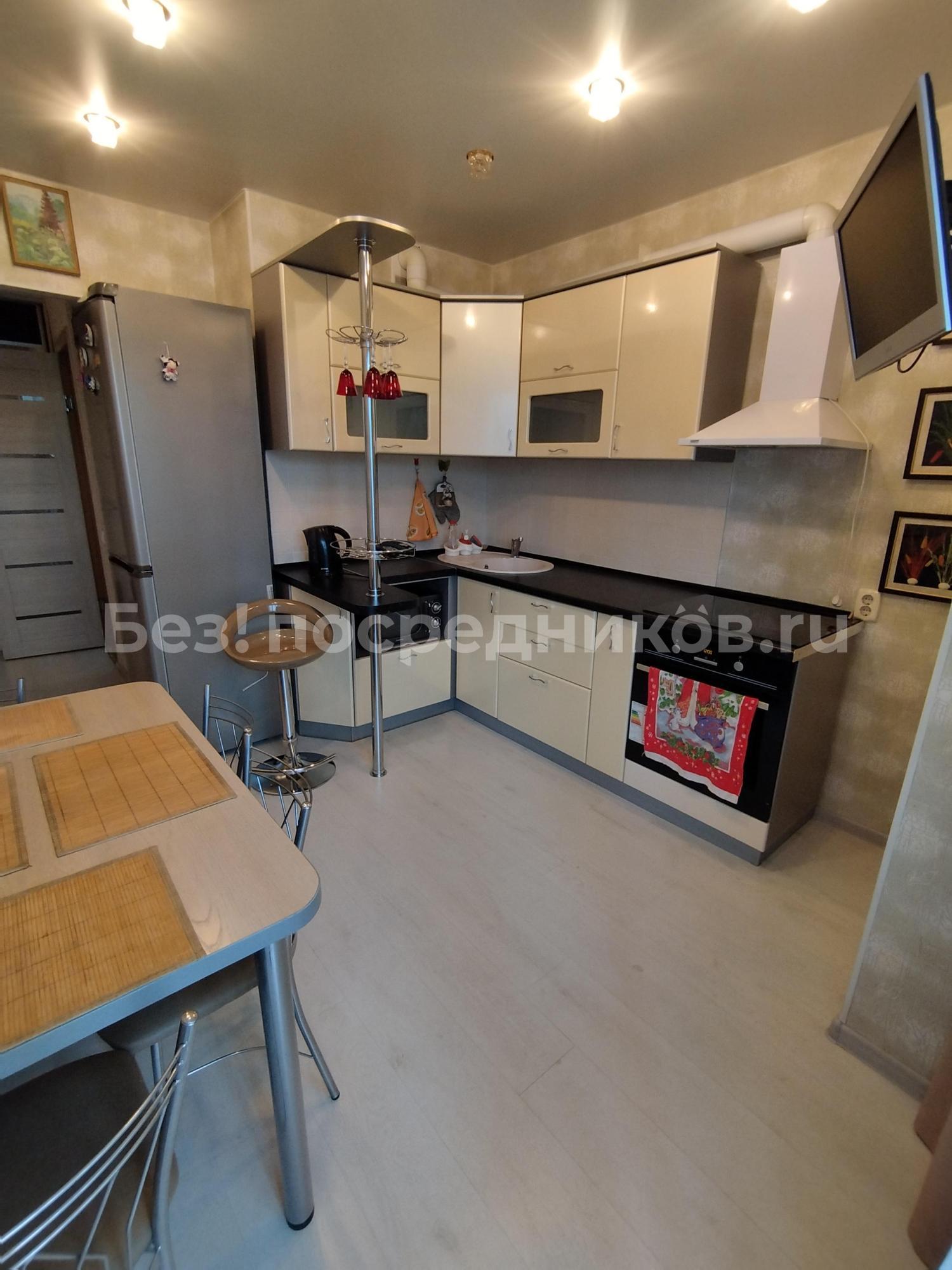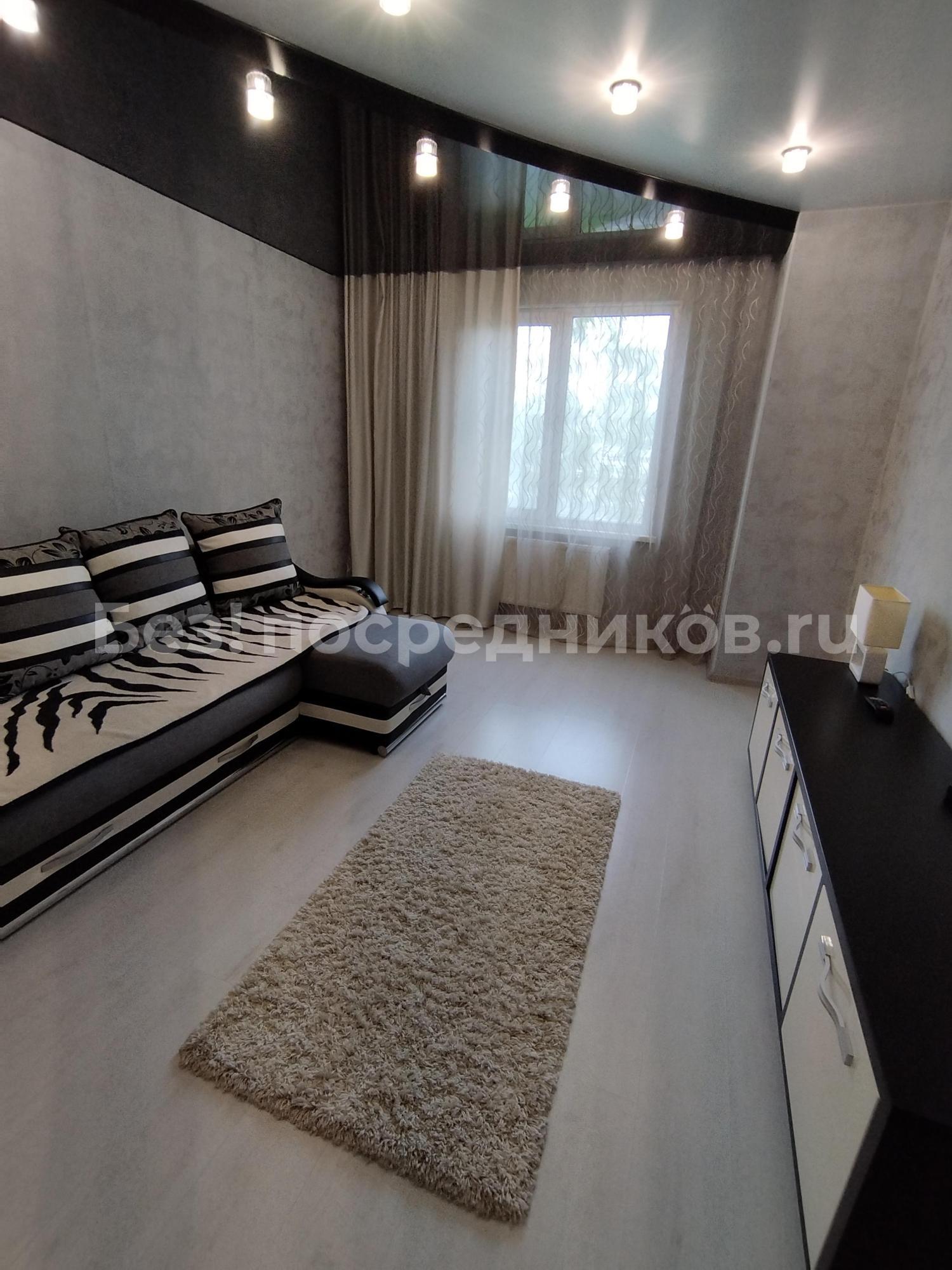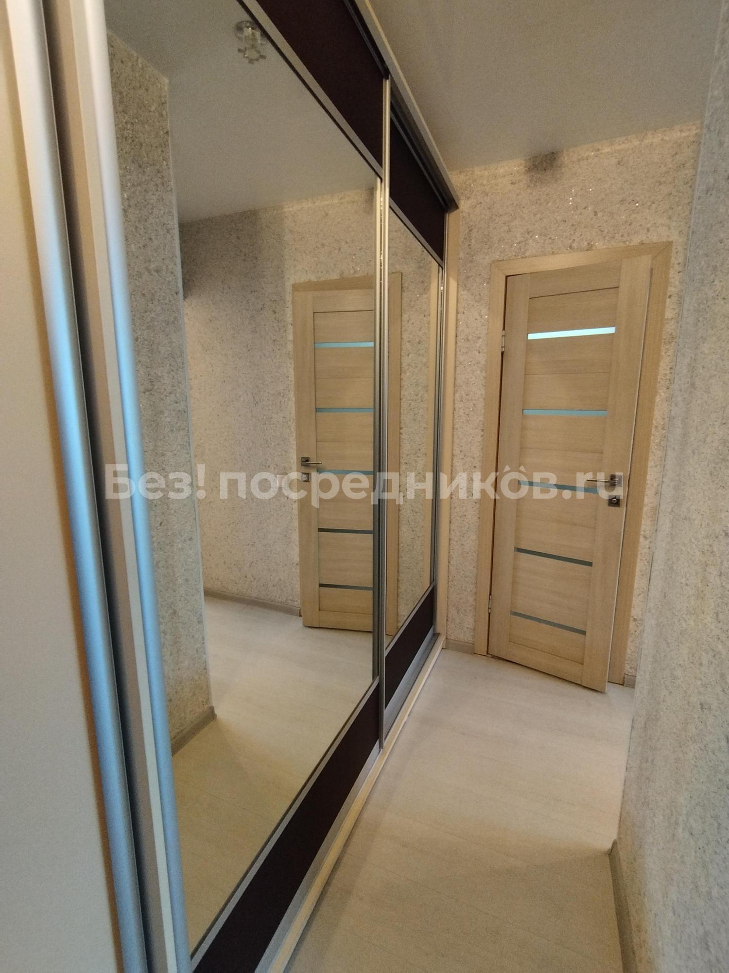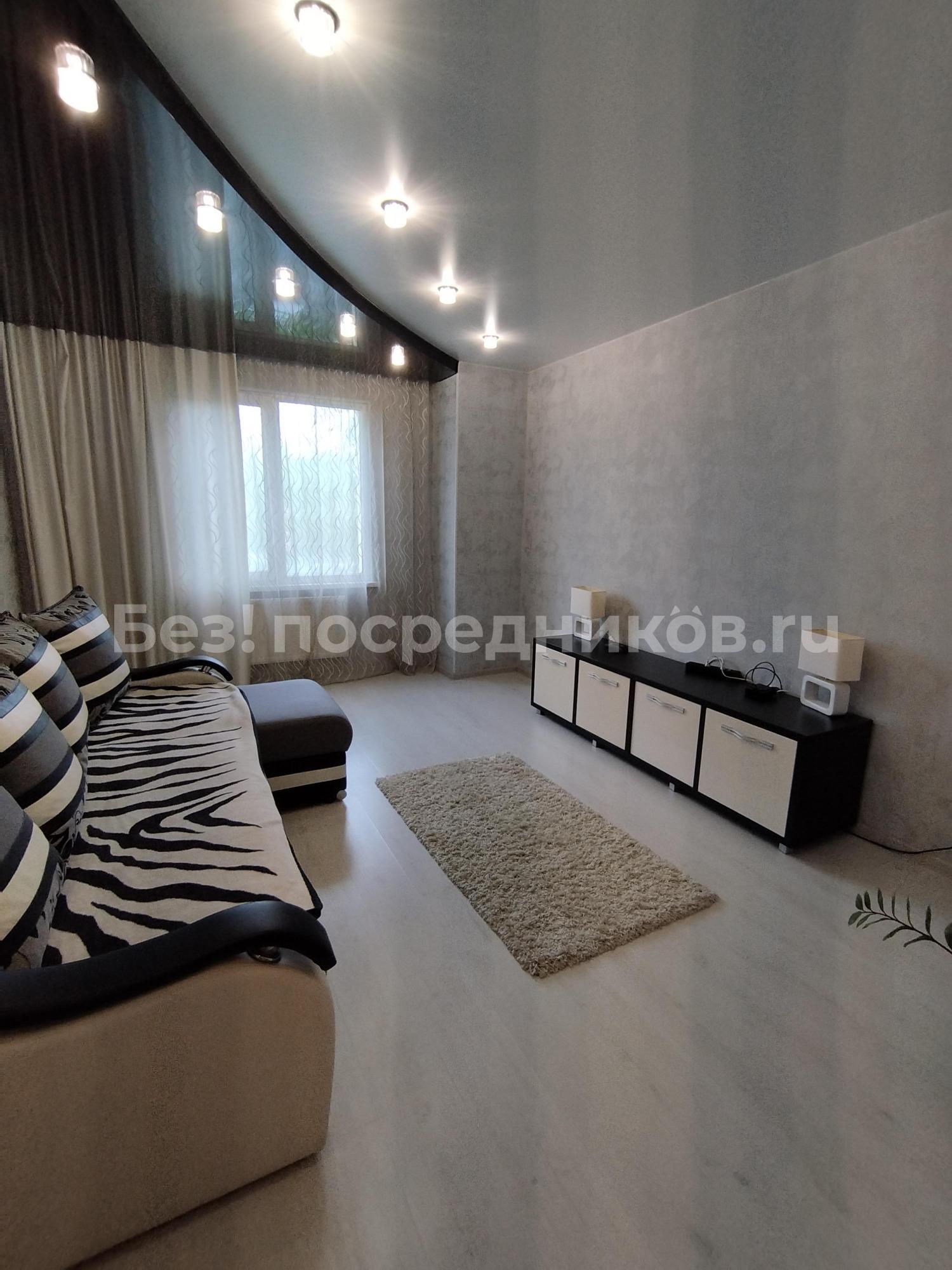 Ламинат,натяжные потолки, встроенные шкафы с зеркальной дверью. Мебель, телевизор, электрическая плита, чайник, холодильник, микроволновка, стиральная машина. Есть водонагреватель.