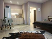 Студия очень тёплая, светлая, чистая с застекленной лоджией. Рядом "Ашан", "Лента", стадион. Хорошая...